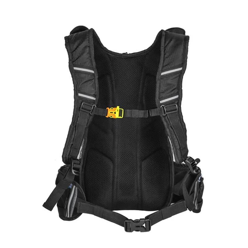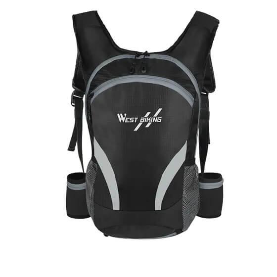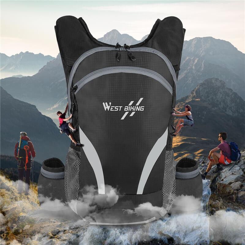Rucsac drumetie, ciclism, alergare, moto, pliabil, bretele in X, mufa pentru casti, multicompartimentat, impermeabil, ultra usor, buzunar sistem hidratare, 10L, West Biking, negru