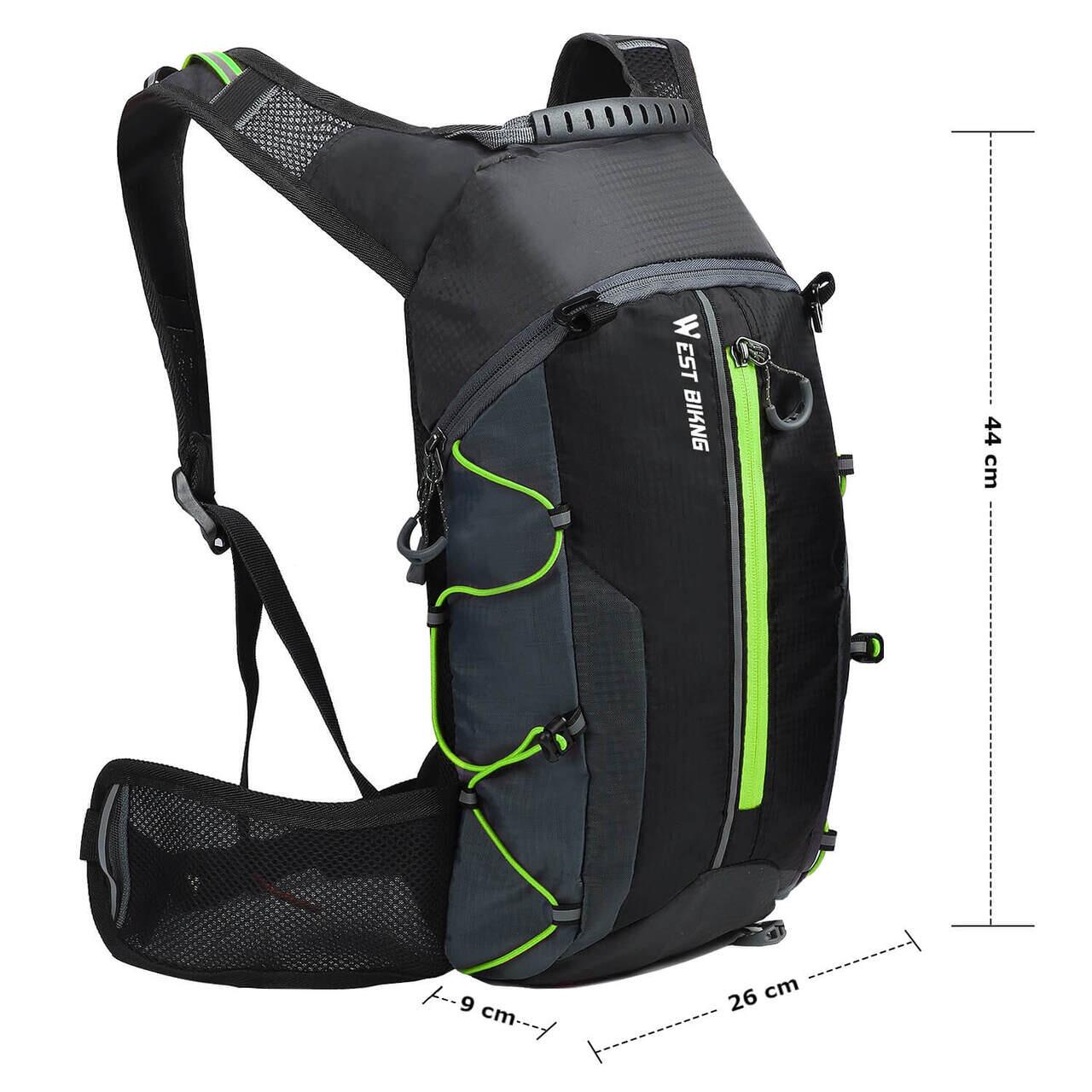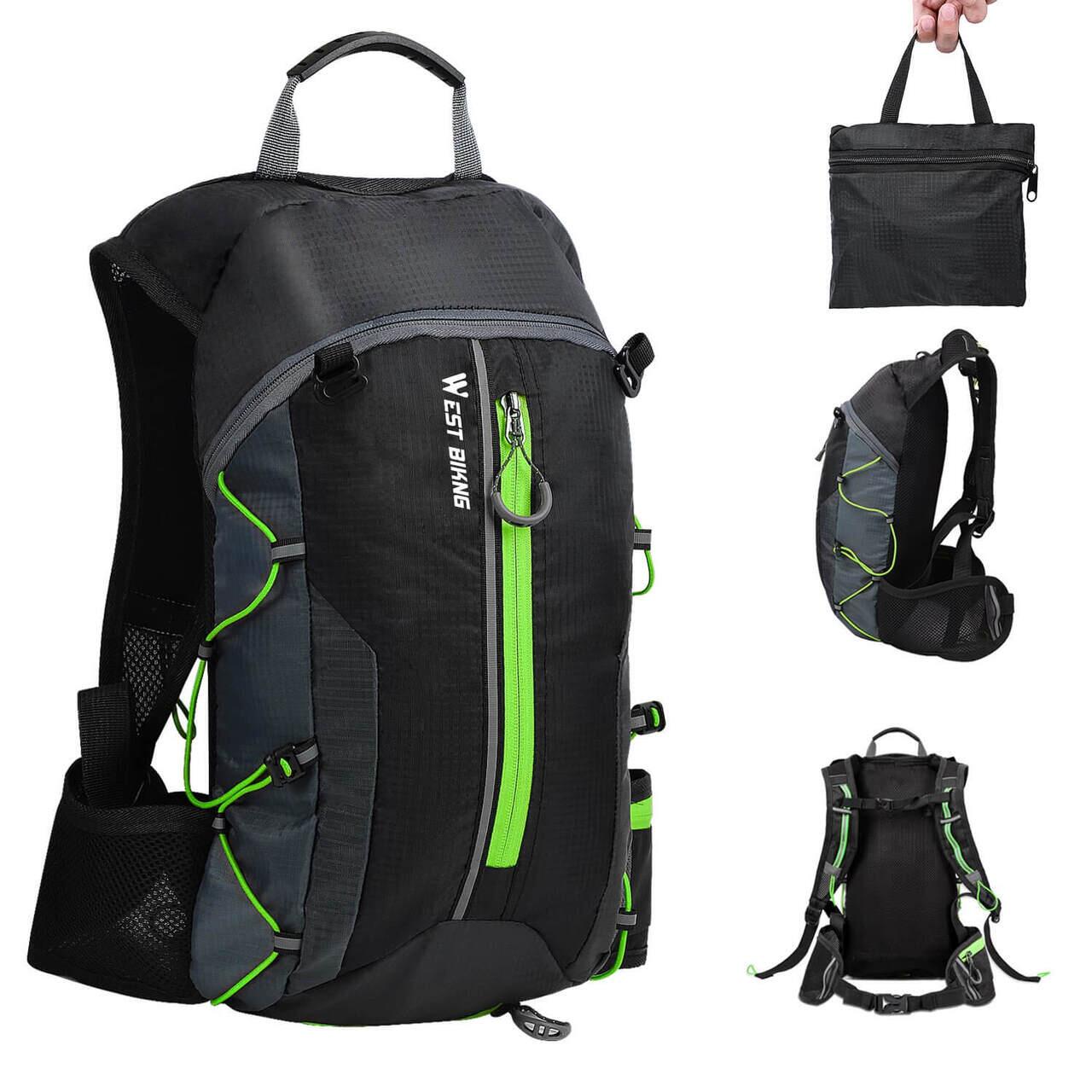 Rucsac bicicleta pliabil, ultra usor, impermeabil, buzunar sistem hidratare, 10L, West Biking, negru cu verde