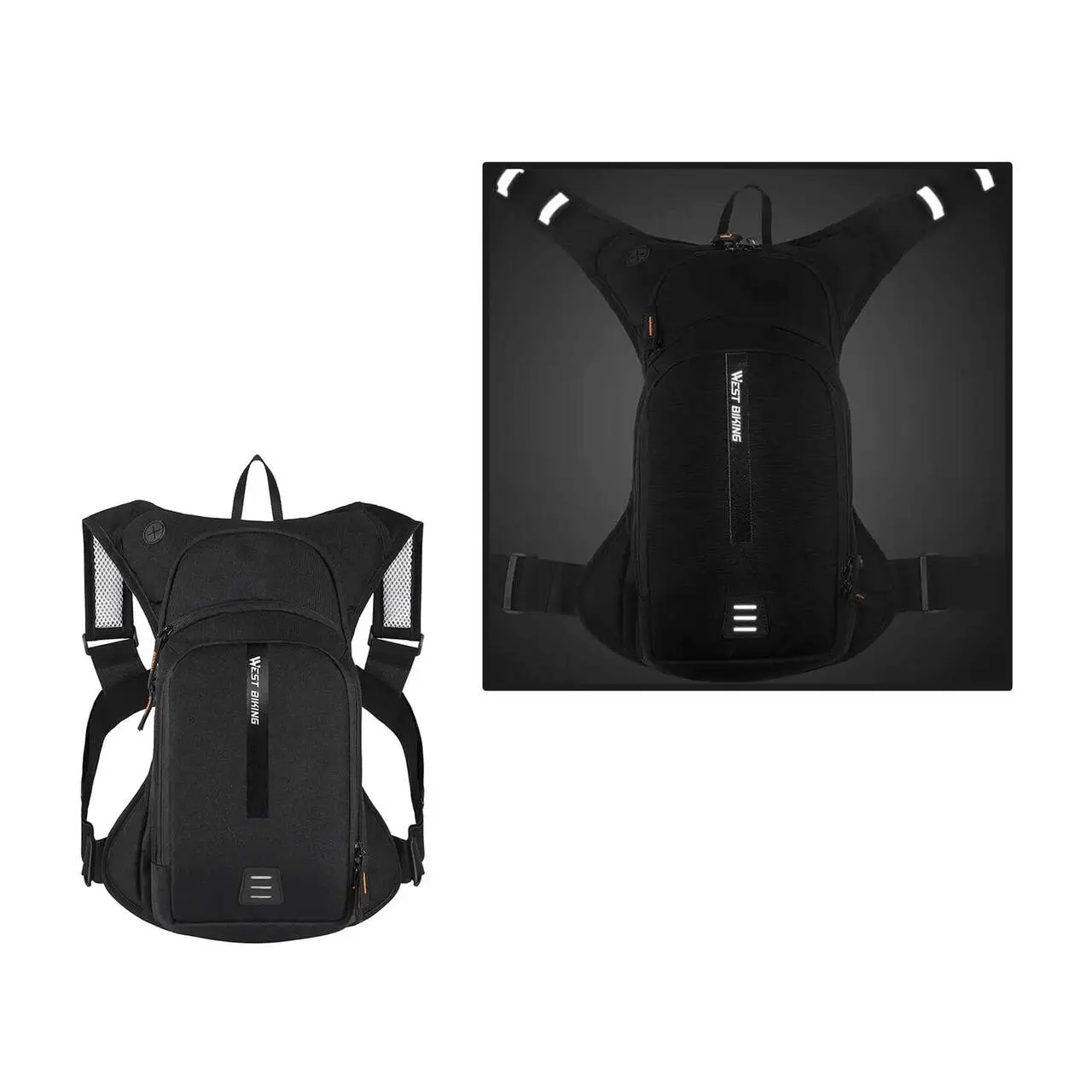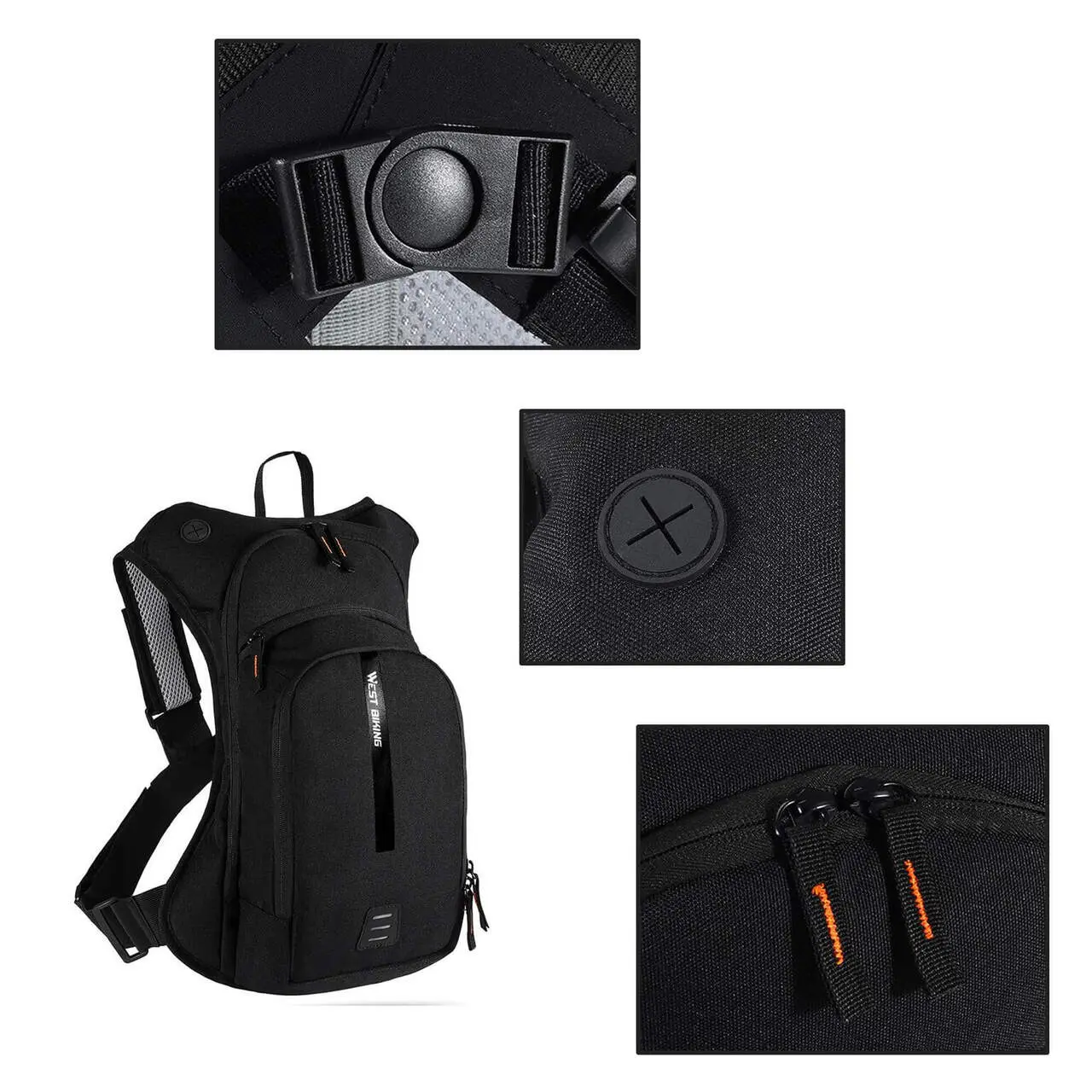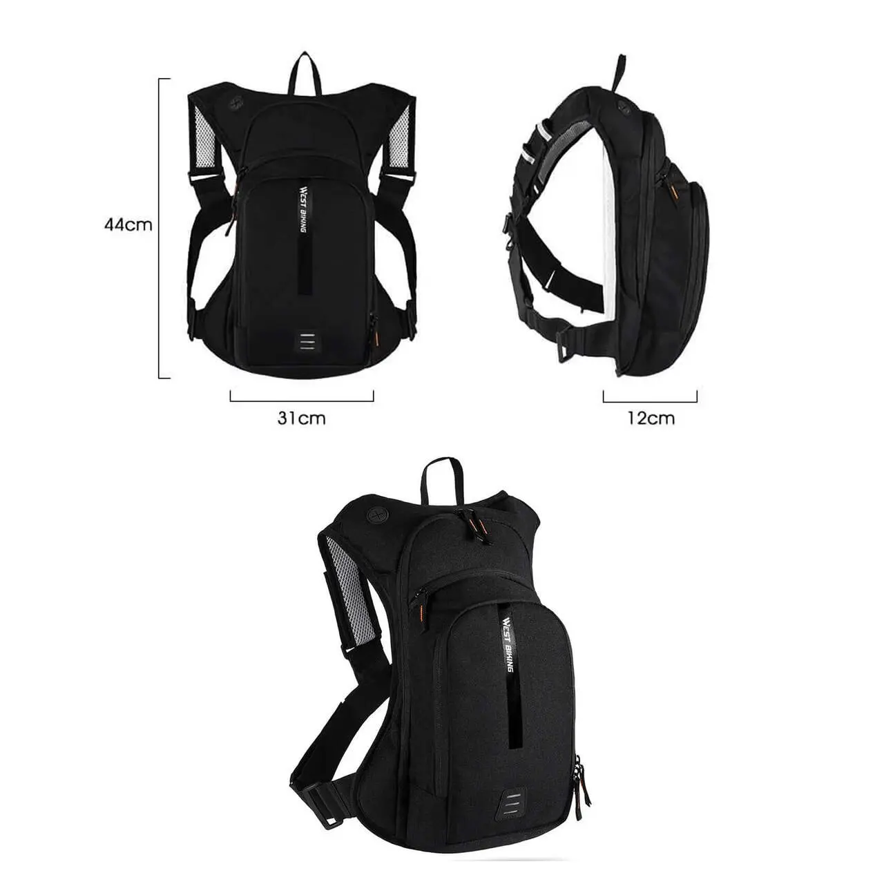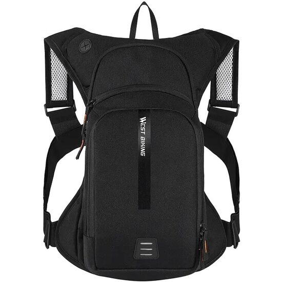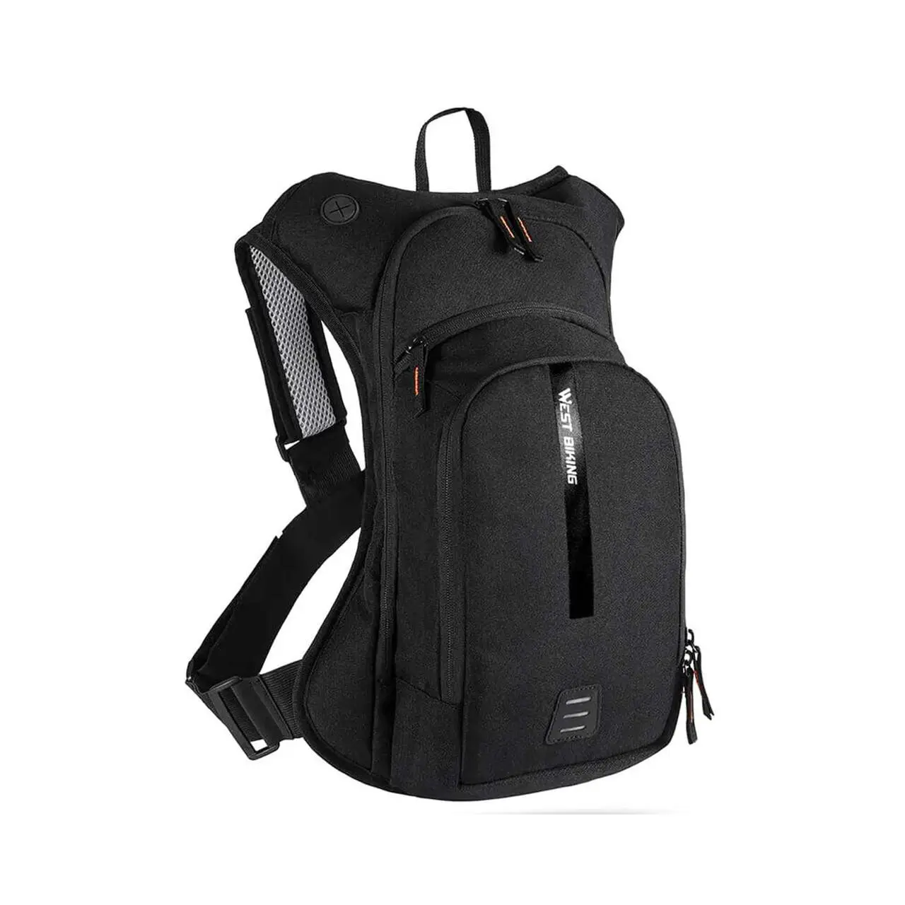 Rucsac drumetie, ciclism, alergare, moto, pliabil, bretele in X, mufa pentru casti, multicompartimentat, impermeabil, ultra usor, buzunar sistem hidratare, 10L, West Biking, negru