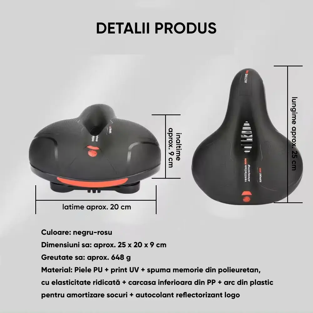 Sa bicicleta, spuma memorie, model lat, amortizare socuri, anti-alunecare, ergonomica, respirabila, banda reflectorizanta, impermeabila, potrivire universala inclusiv MTB