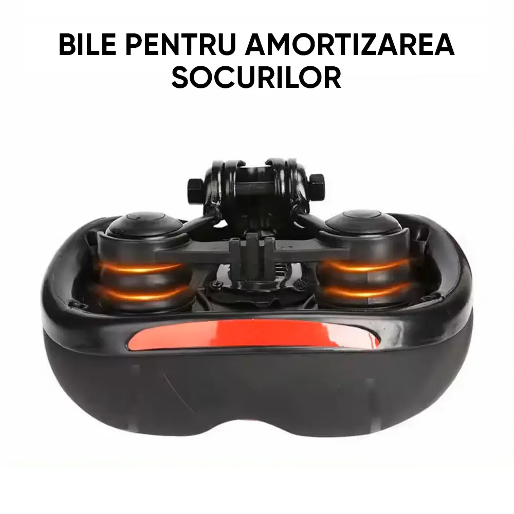 - Saua este ergonomica, iar bilele pentru amortizare, din partea inferioara a acesteia, ofera o absorbtie foarte mare a socurilor.