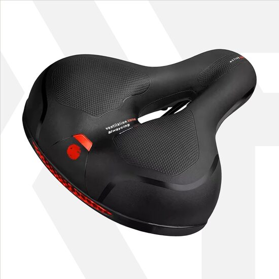 Sa cu potrivire universala (inclusiv biciclete MTB), confectionata din spuma de memorie si cu o banda reflectorizanta rosie, pentru a garanta siguranta pe parcursul calatoriilor nocturne.