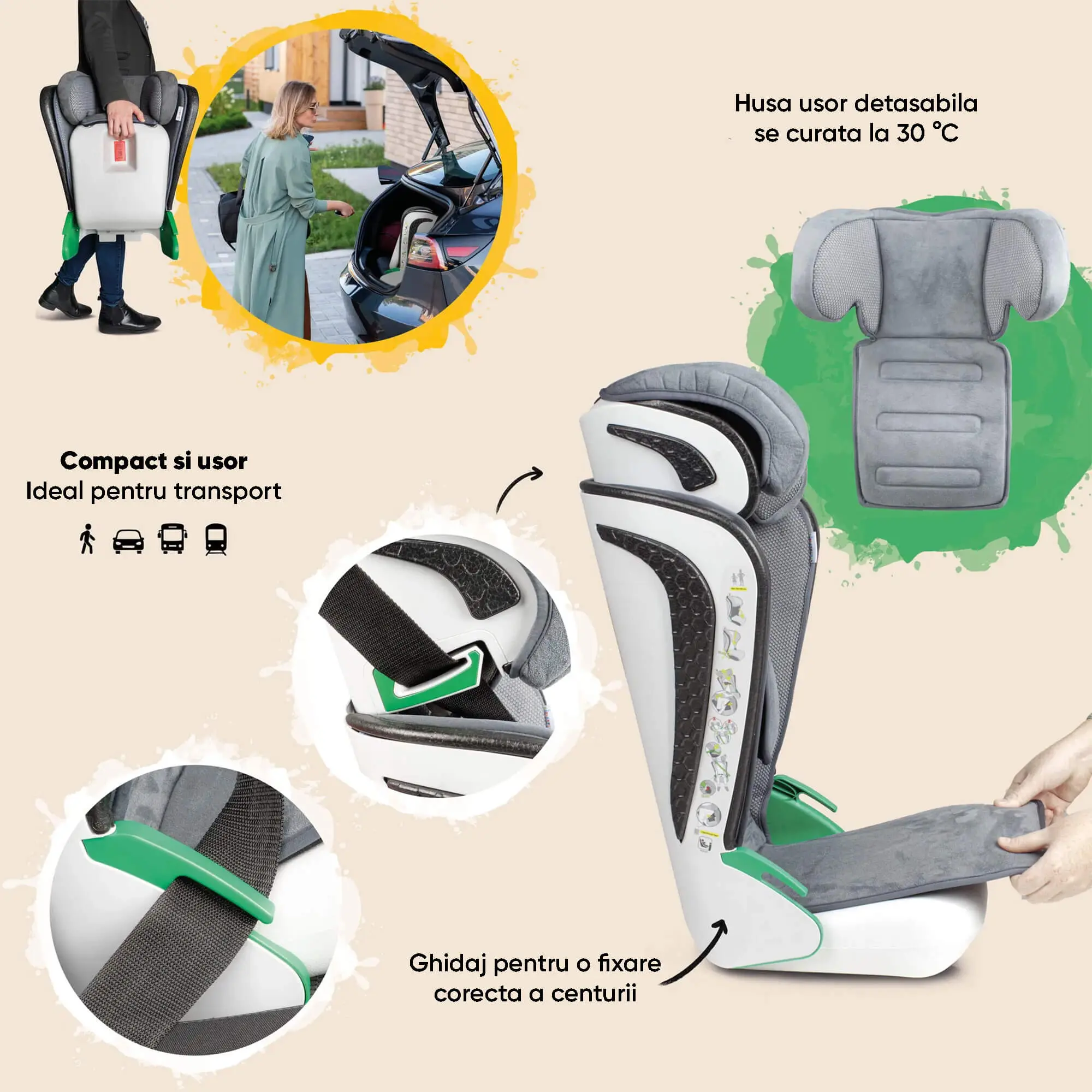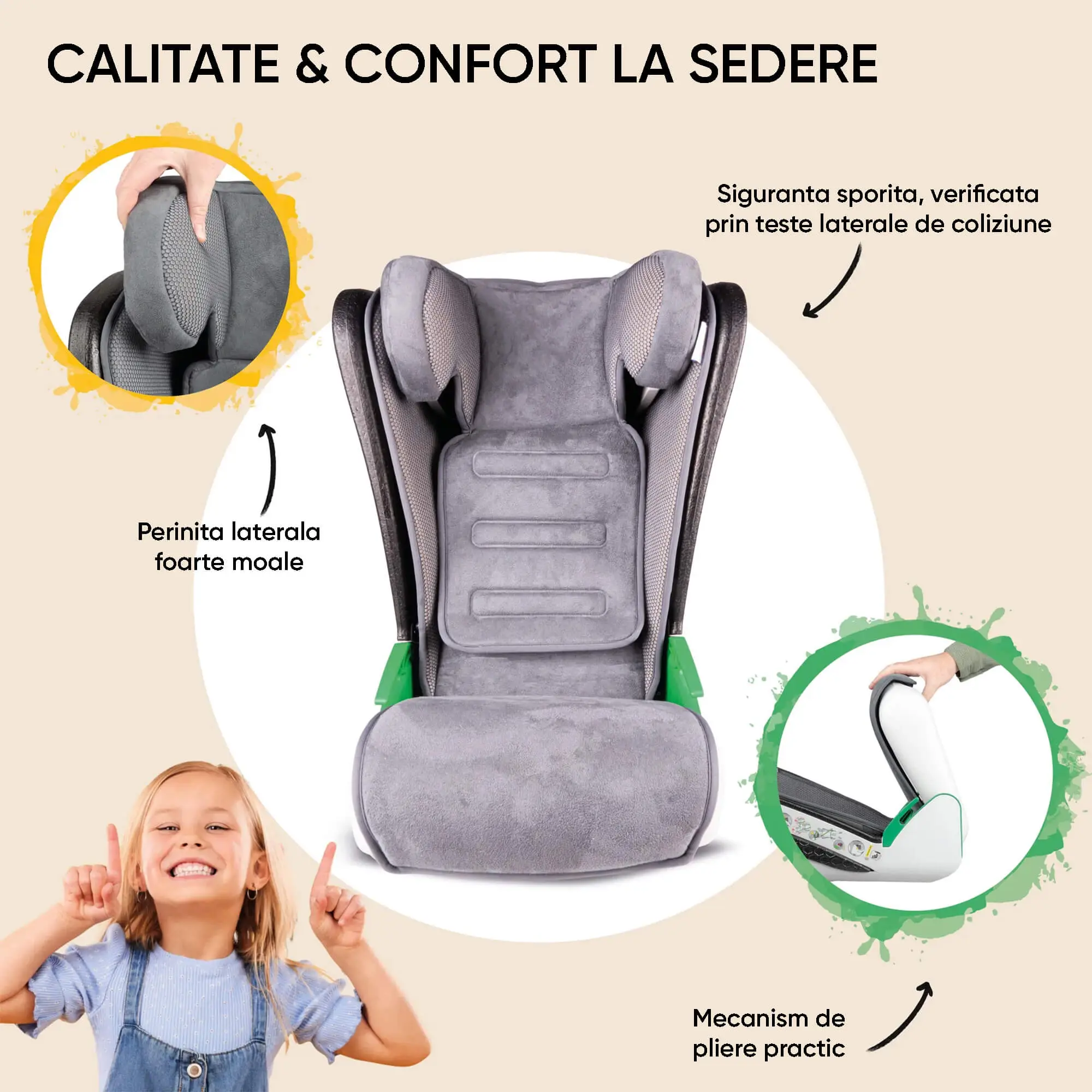 - Design-ul scaunului auto pentru copii este inspirat de tendintele actuale din domeniul auto.