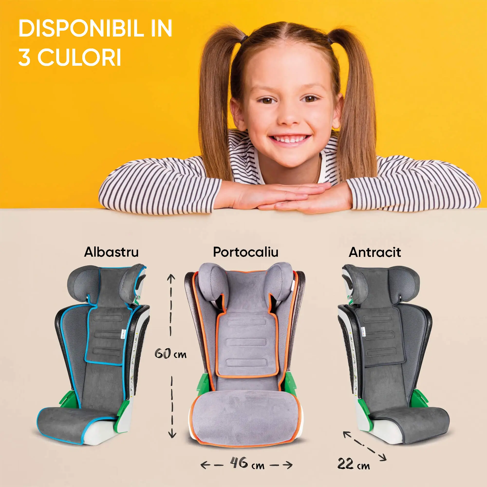 - Tetiera scaunului auto Noemi este reglabila pe inaltime, astfel, scaunul pentru copii creste odata cu copilul dumneavoastra, de la 100 - 135 cm.
