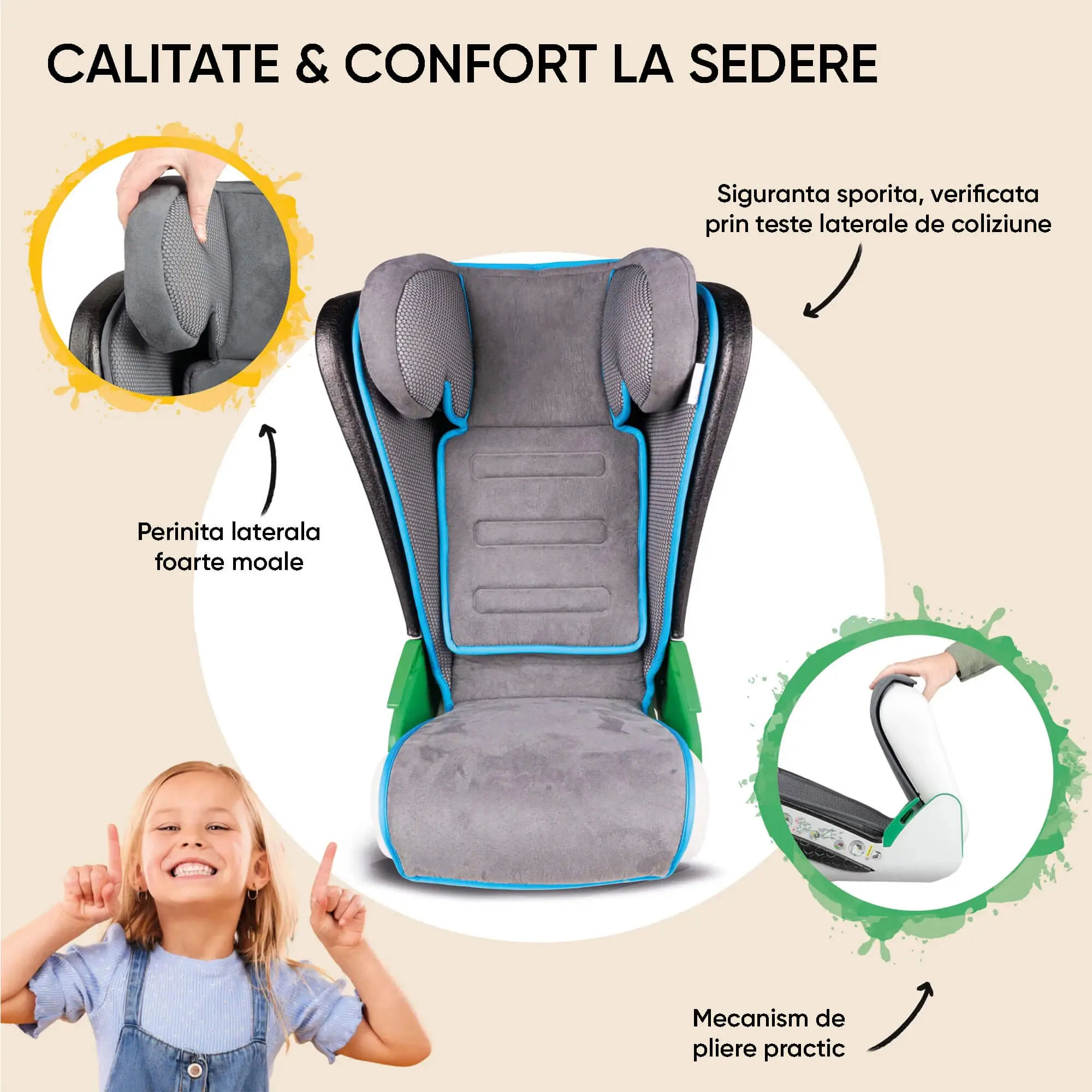 - Design-ul scaunului auto pentru copii este inspirat de tendintele actuale din domeniul auto.