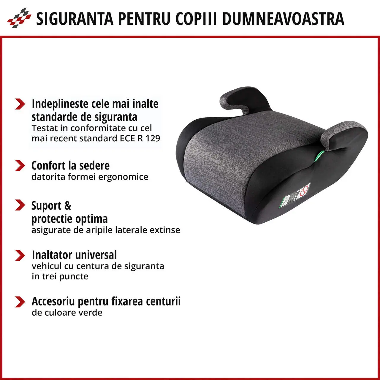 Scaun inaltator auto pentru copii Raffi, siguranta si confort, Walser, inaltime copii 125-150 cm, omologat standard ECE R 129, universal, ergonomic, gri/negru - resigilat3, produs testat/utilizat, perfect functional, fara ambalaj original