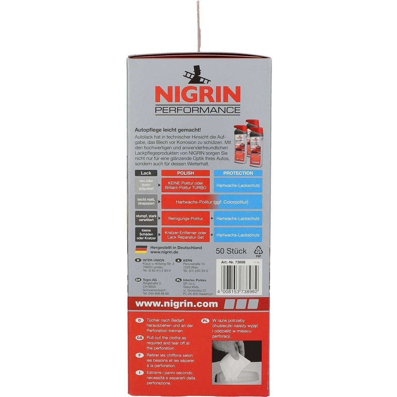 Servetele polish pentru lustruit auto, Nigrin Performance, 50 buc, 21 x 28 cm