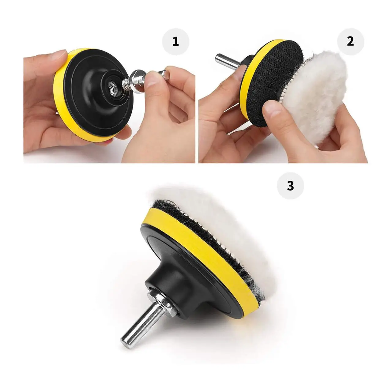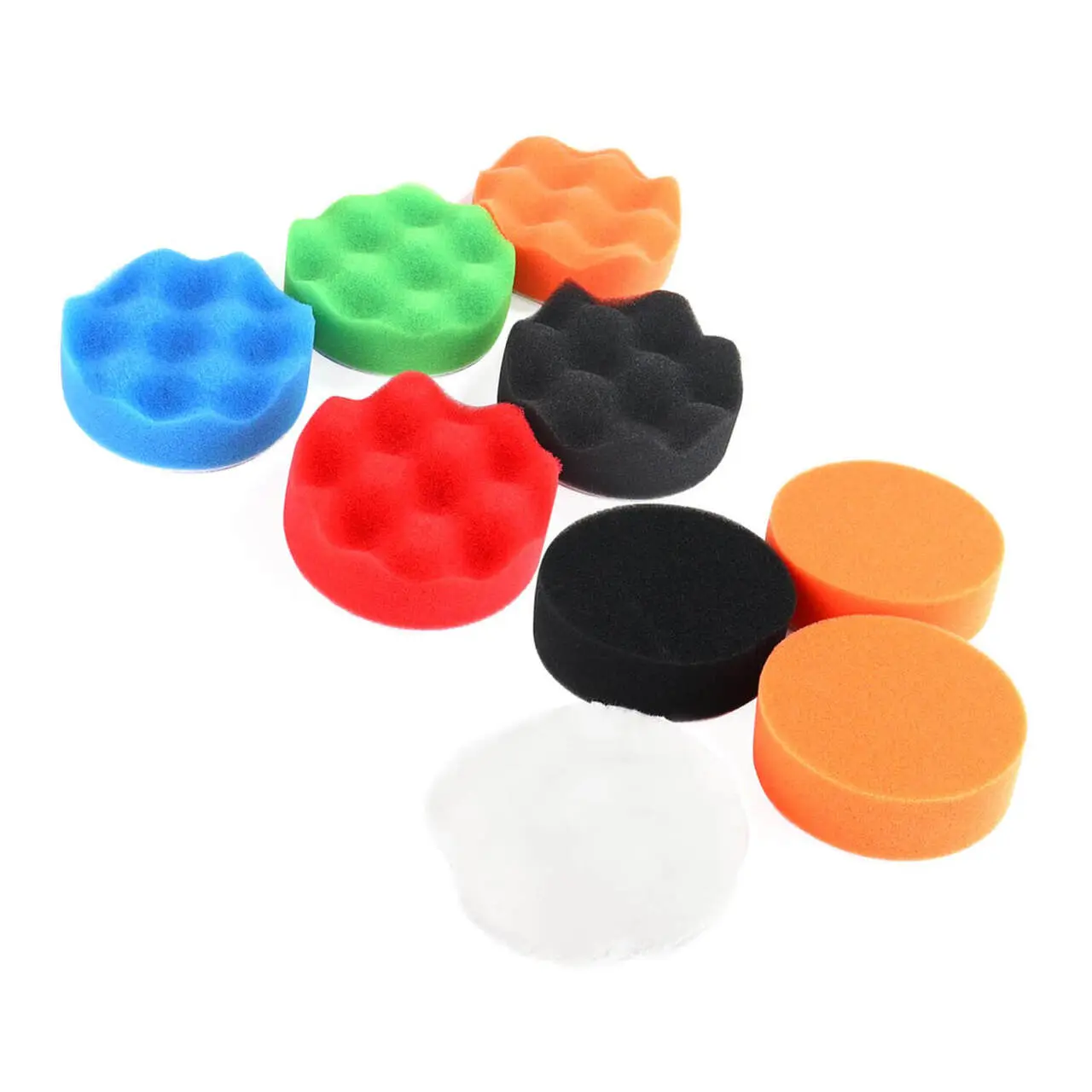 Discuri de burete si lana: cu diametrul de 8 cm, aceste discuri sunt ideale pentru diverse etape ale procesului de lustruire, de la aplicarea compusului de polish pana la finisare si protectie.
