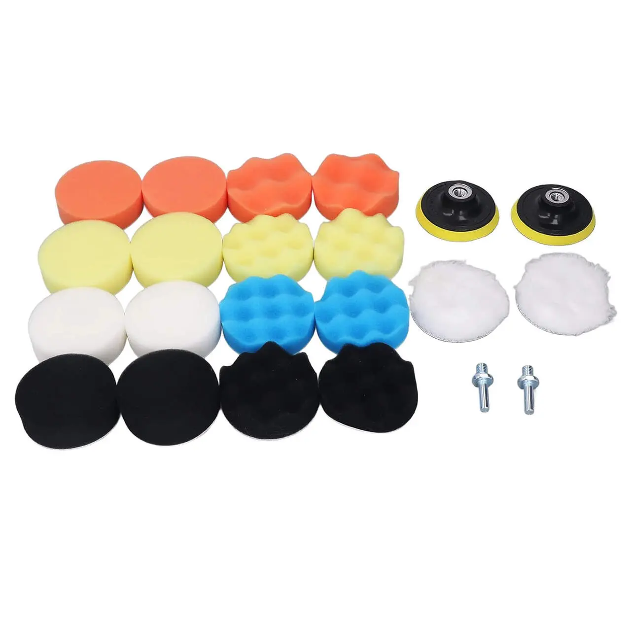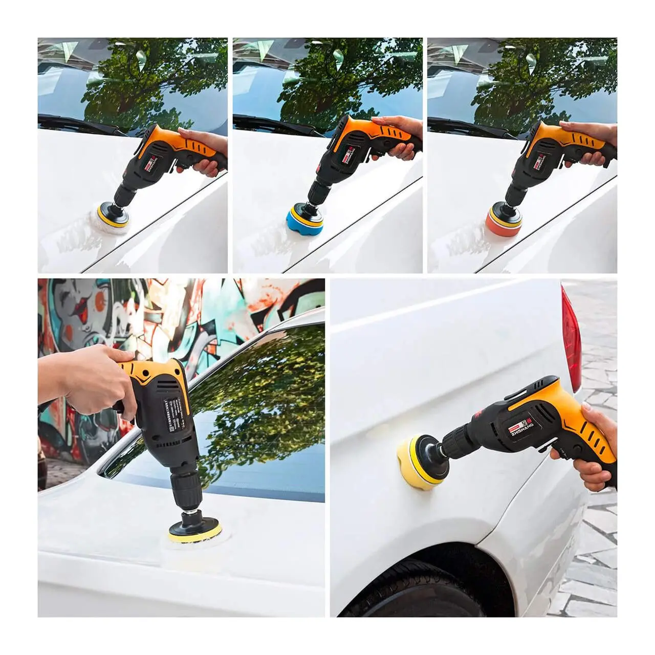 Discuri de burete si lana: cu diametrul de 8 cm si 7.5 cm, aceste discuri sunt perfecte pentru diverse etape ale lustruirii, de la aplicarea compusului de polish pana la finisarea si sigilarea vopselei.