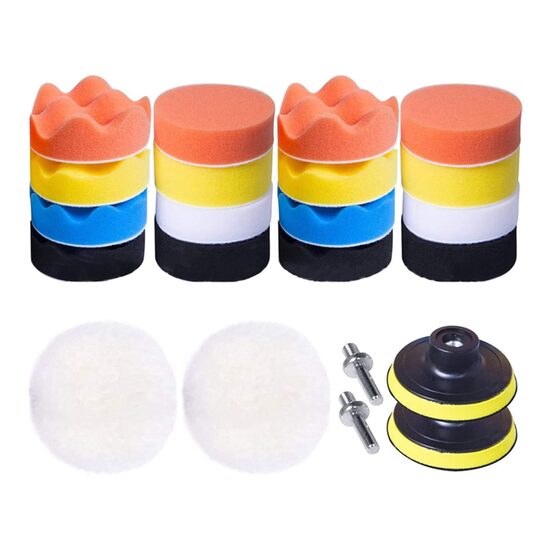 Set 22 piese polish auto profesional cu taler M14, discuri de burete si lana cu diametru 8 cm si 7.5 cm, conectare la bormasina autofiletanta