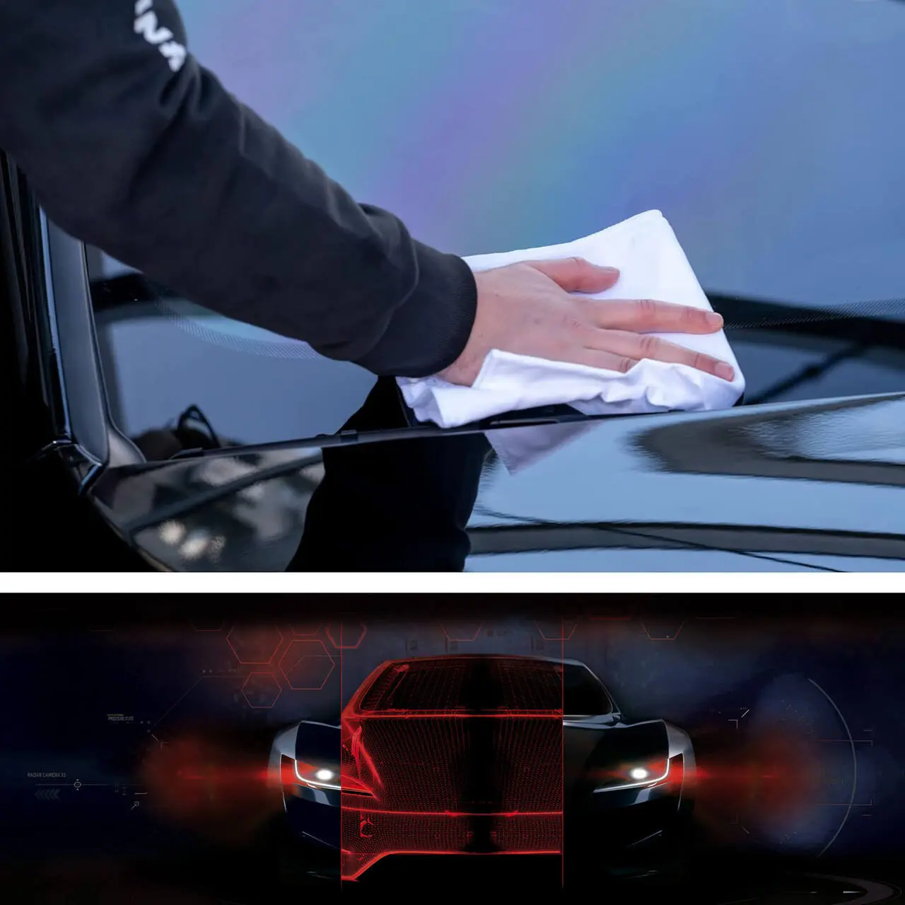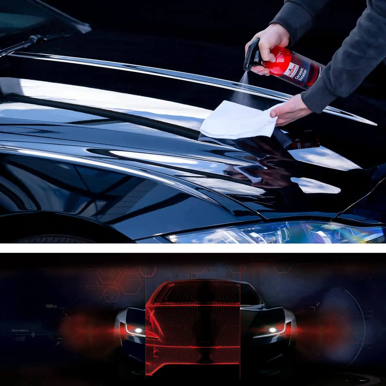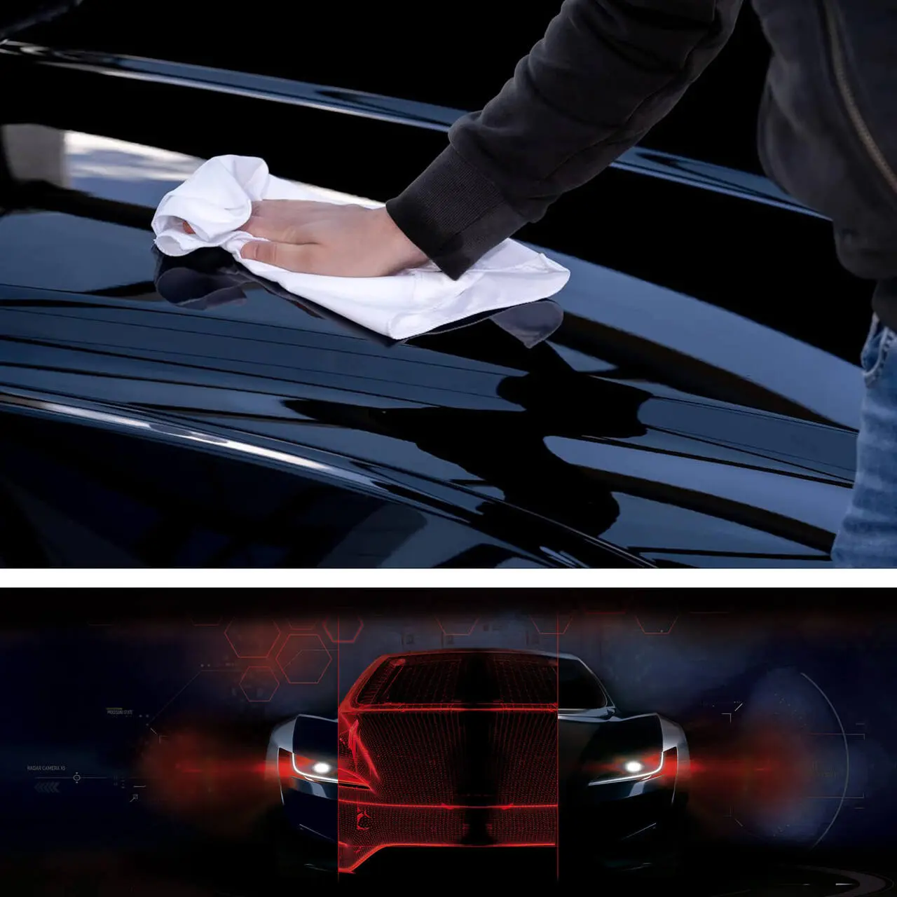 - Pulverizati NIGRIN Performance Ceramic Detailer pe o laveta moale din microfibra si aplicati cu generozitate pe vopsea, impartind pe sectiuni (de exemplu, pe portiere sau pe capota).