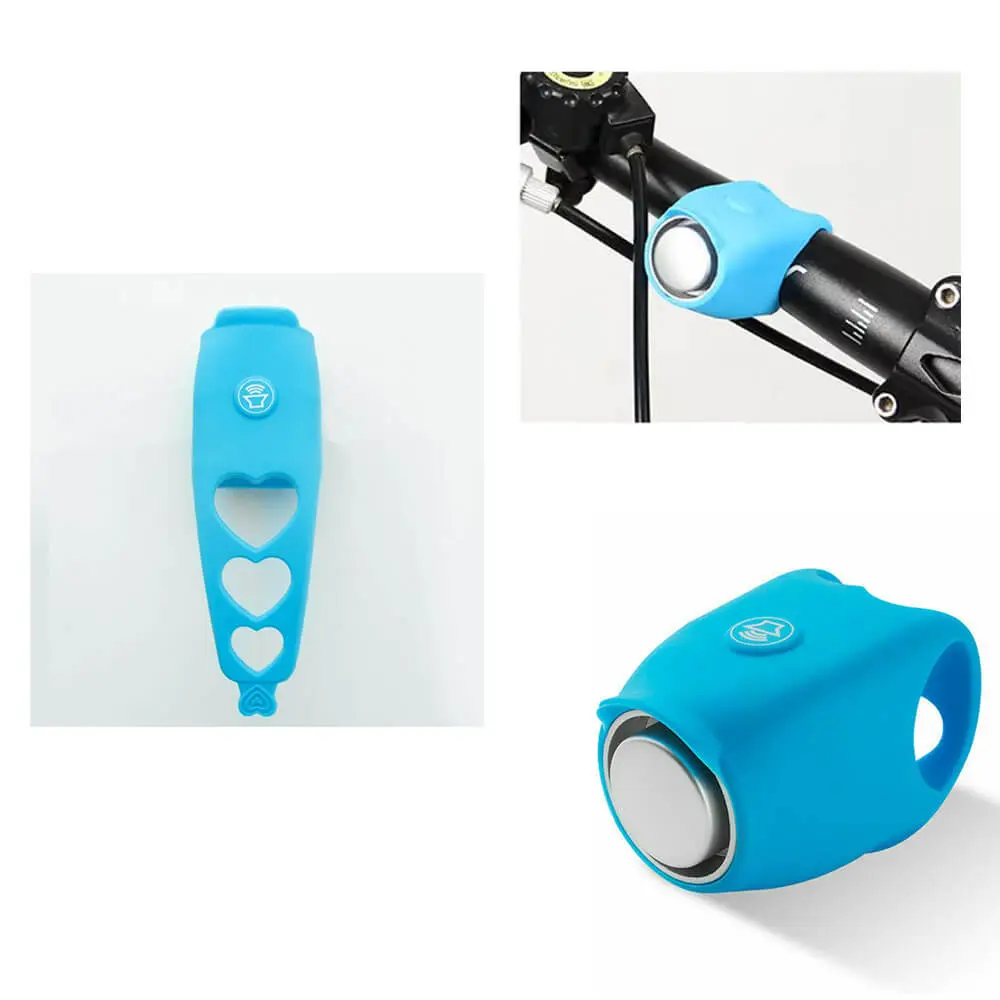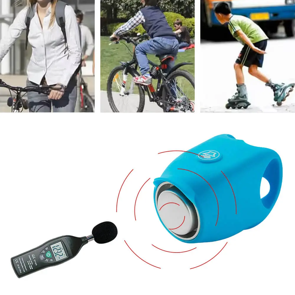 Sonerie bicicleta copii, mini, 120 dB, 4 tipuri de sunete, potrivire universala inclusiv trotineta, scuter, bicicleta electrica, e-bike, prindere ghidon, albastru
