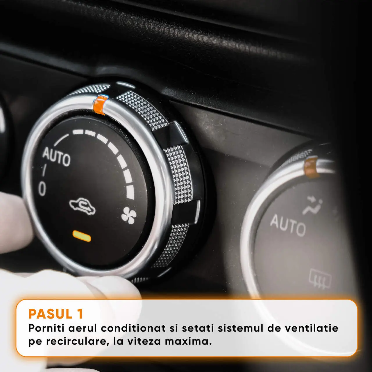 - PASUL 1: Porniti aerul conditionat si setati sistemul de ventilatie pe recirculare, la intensitate maxima.