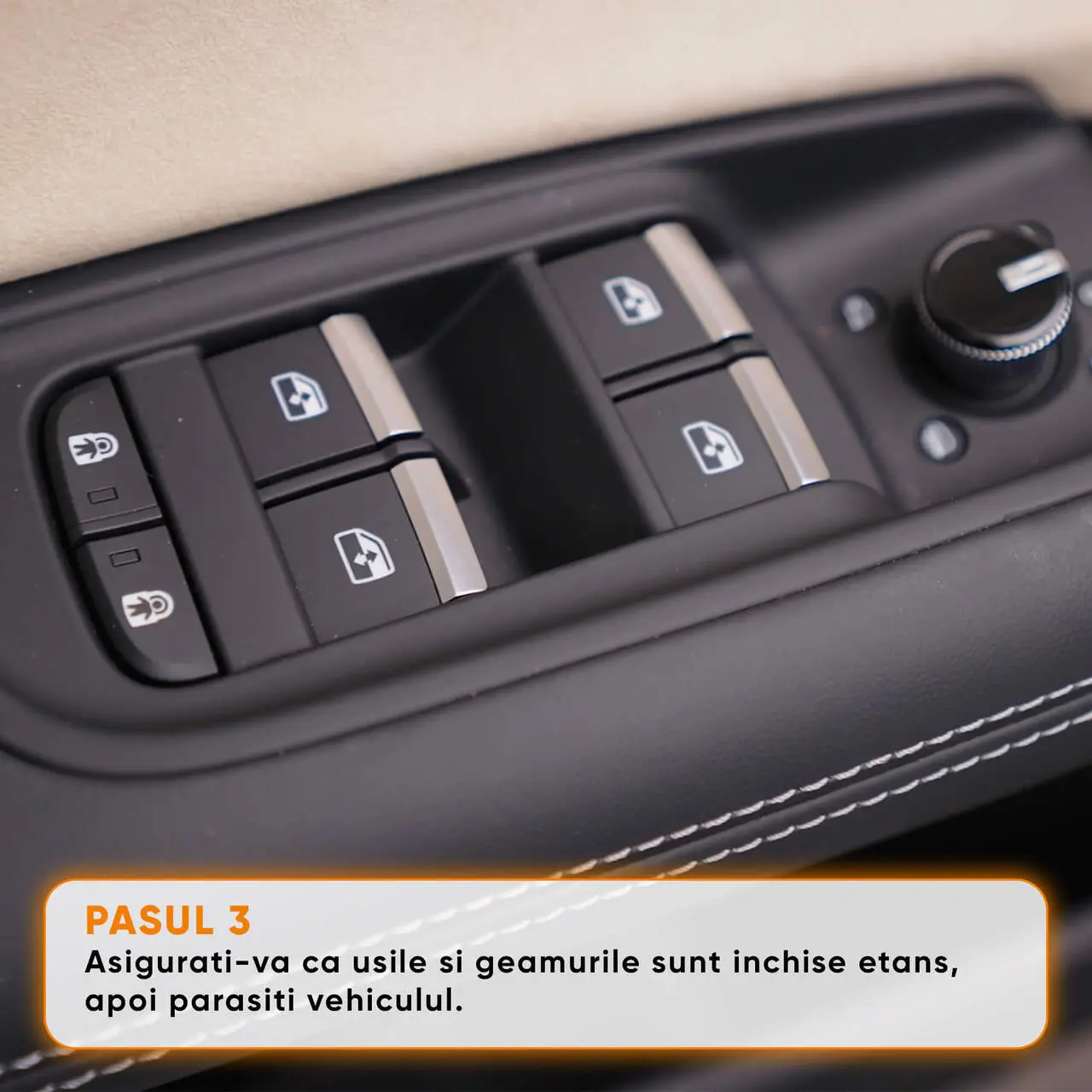- PASUL 3: Asigurati-va ca usile si geamurile sunt inchise etans si parasiti vehiculul.