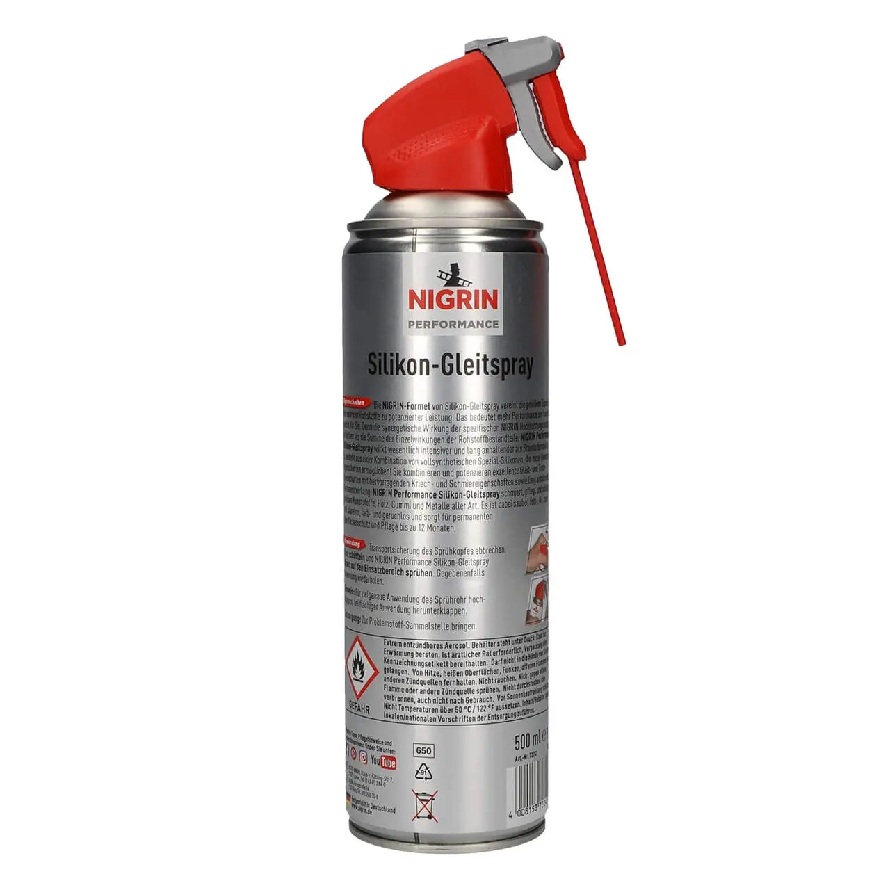 Spray lubrifiant cu silicon, Nigrin Performance, pentru plastic, cauciuc, metal si lemn, 500 ml, cu aplicator