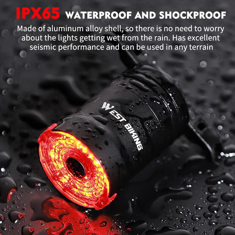 Stop bicicleta cu LED, 6 moduri de iluminare, senzor de frana si de lumina, mod operare automat sau manual, incarcare USB, prindere sub, potrivire universala, plastic ABS, rezistent la apa, West Biking, negru