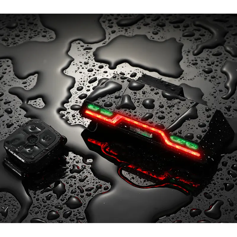 - Telecomanda wireless are baterie de 700 mAh si cu ajutorul ei, puteti controla functiile stopului inclusiv semnalizarea stanga/dreapta cand virati.