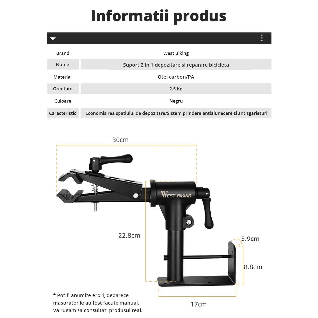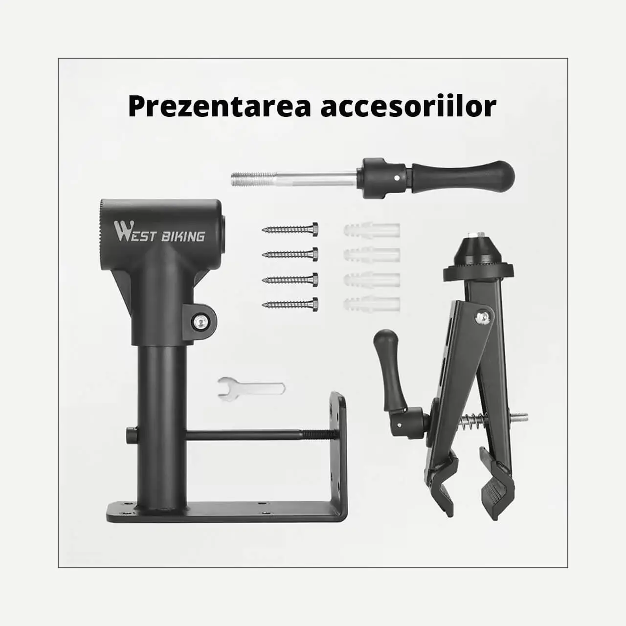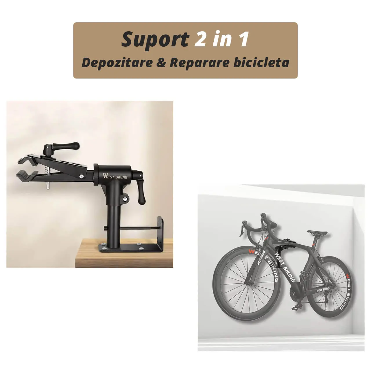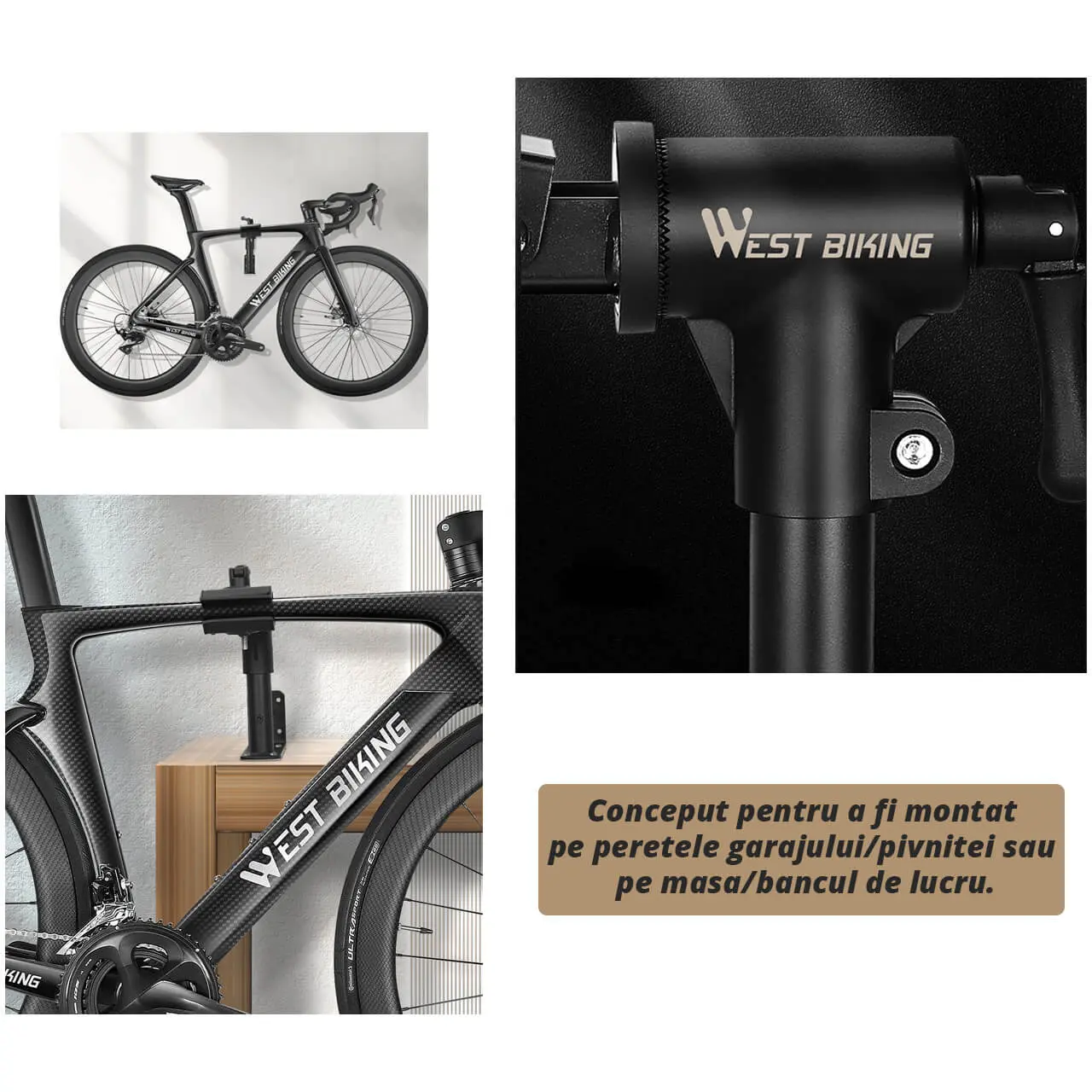 Suport depozitare si reparare bicicleta West Biking, sustine pana la 40 kg, prindere perete/masa, antialunecare, reglabil