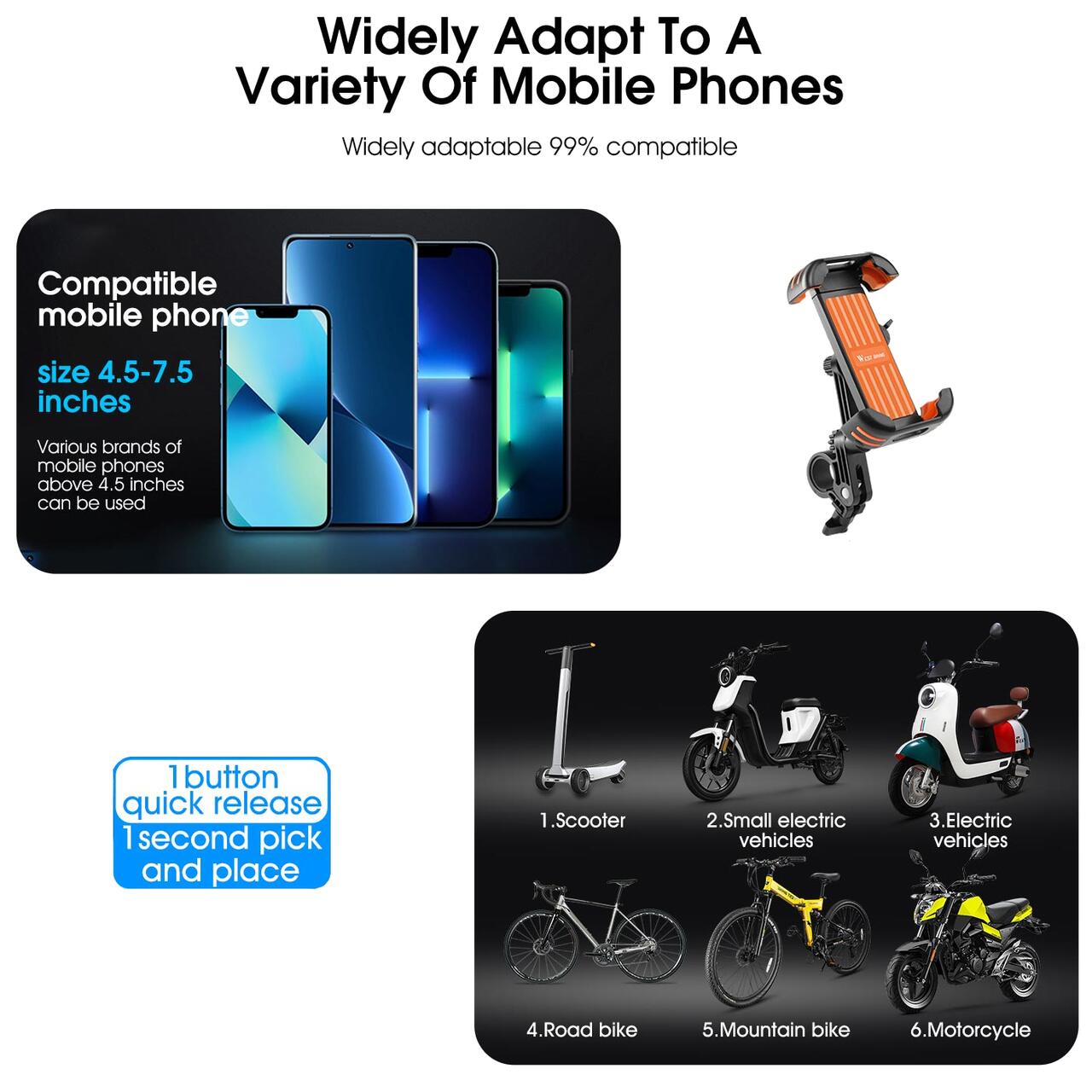 - Compatibil cu multe modele de telefoane, cu ajutorul suportului o sa va fie mai usor sa navigati pe telefon, sa raspundeti la apeluri sau mesaje in timp ce va plimbati cu bicicleta, trotineta etc.