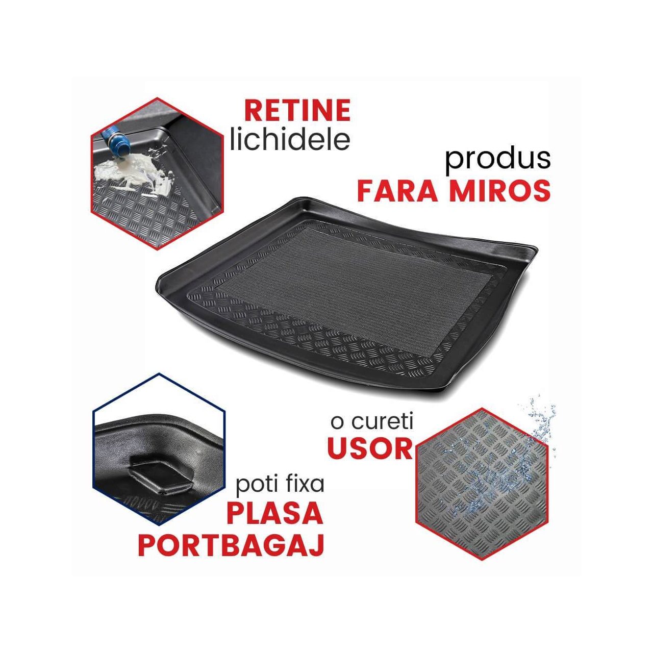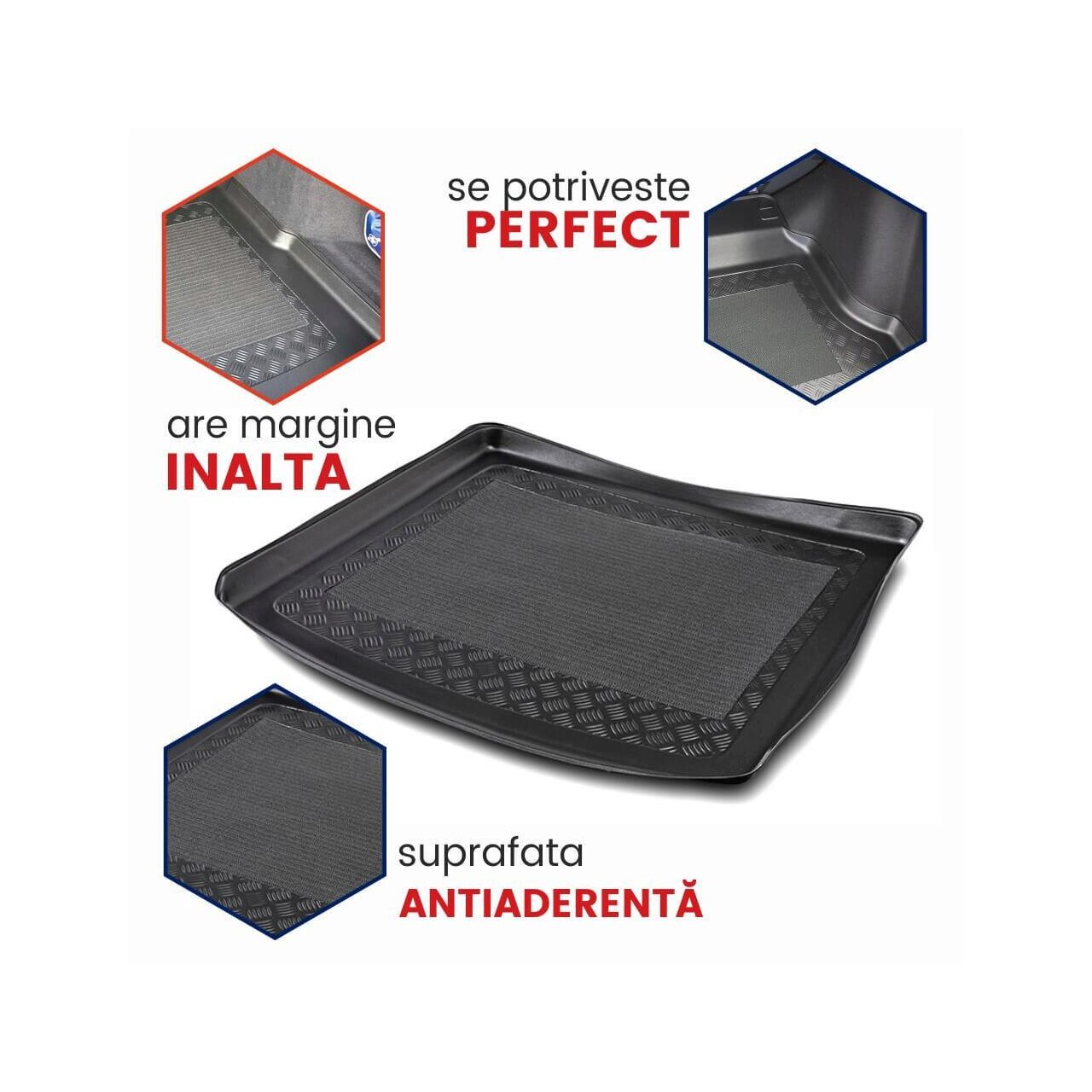 Indiferent ce ti se varsa in portbagaj, esti asigurat ca ramane in tavita si nu ajunge pe mocheta. - SUPRAFATA ANTIDERAPANTA