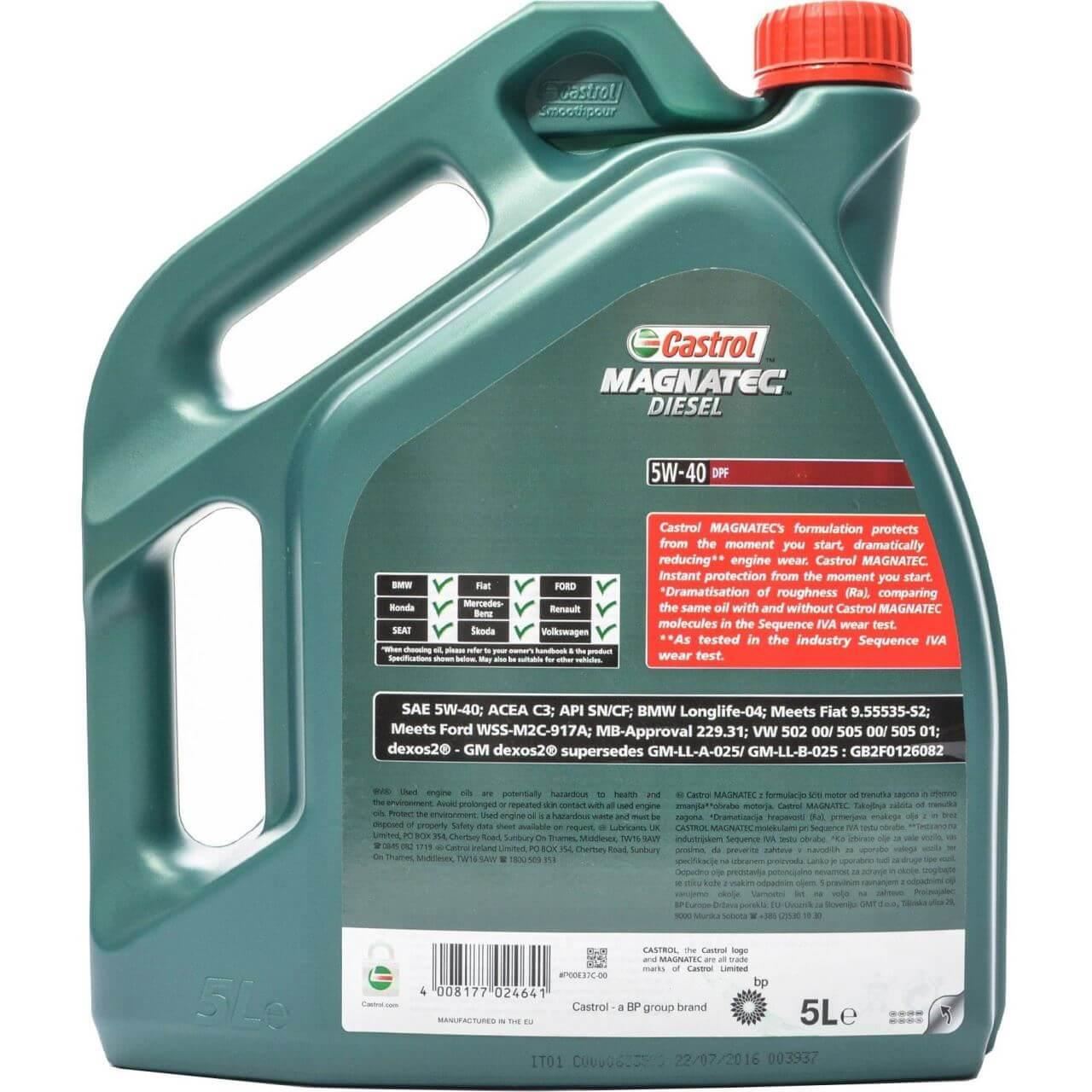 - Castrol Magnatec 5W-40 C3 este potrivit pentru motoarele pe benzină și motoarele diesel unde producătorul recomandă un ulei cu specificația ACEA