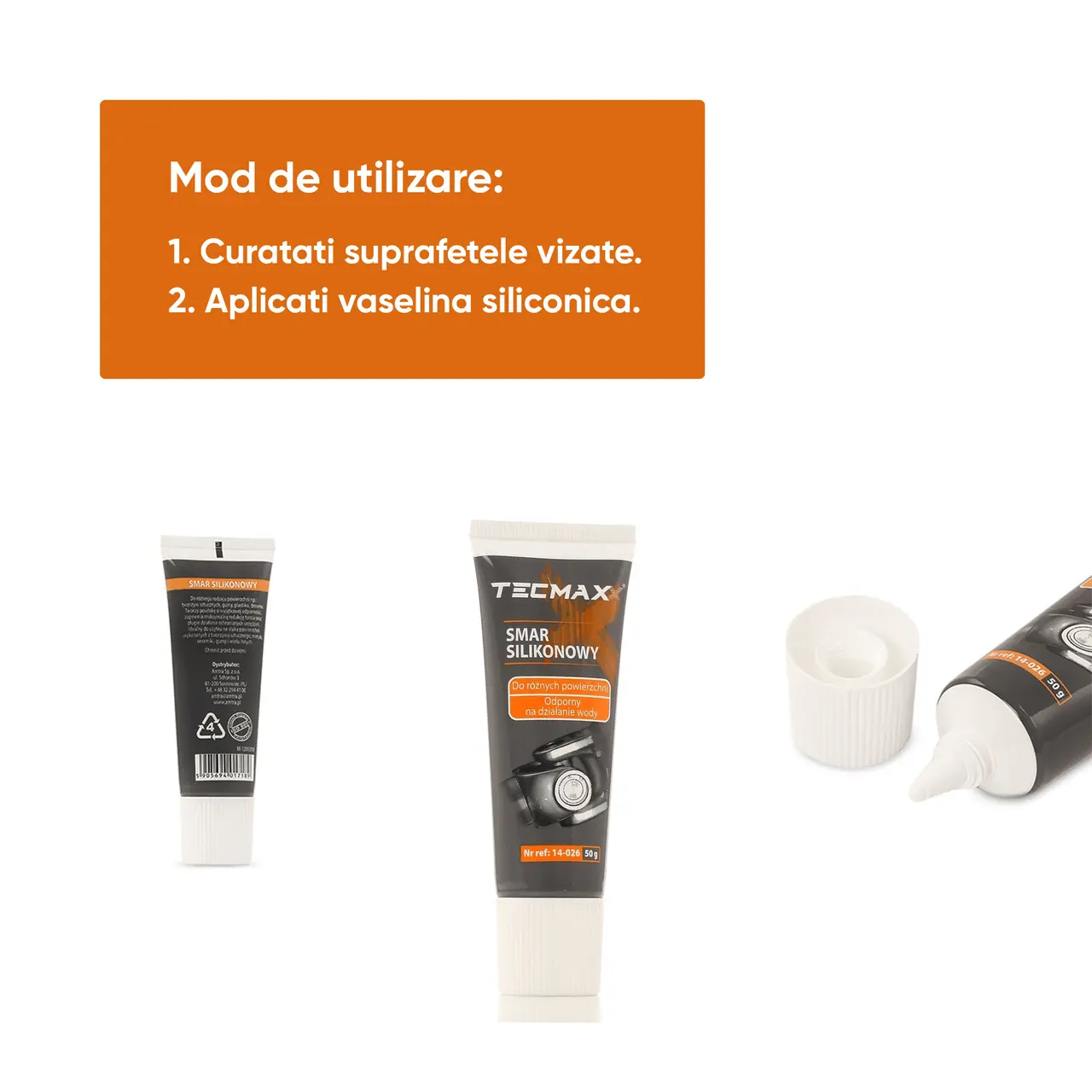 - Vaselina siliconica este ideala pentru utilizarea pe diferite tipuri de suprafete, de ex. din metal, plastic, cauciuc, lemn.