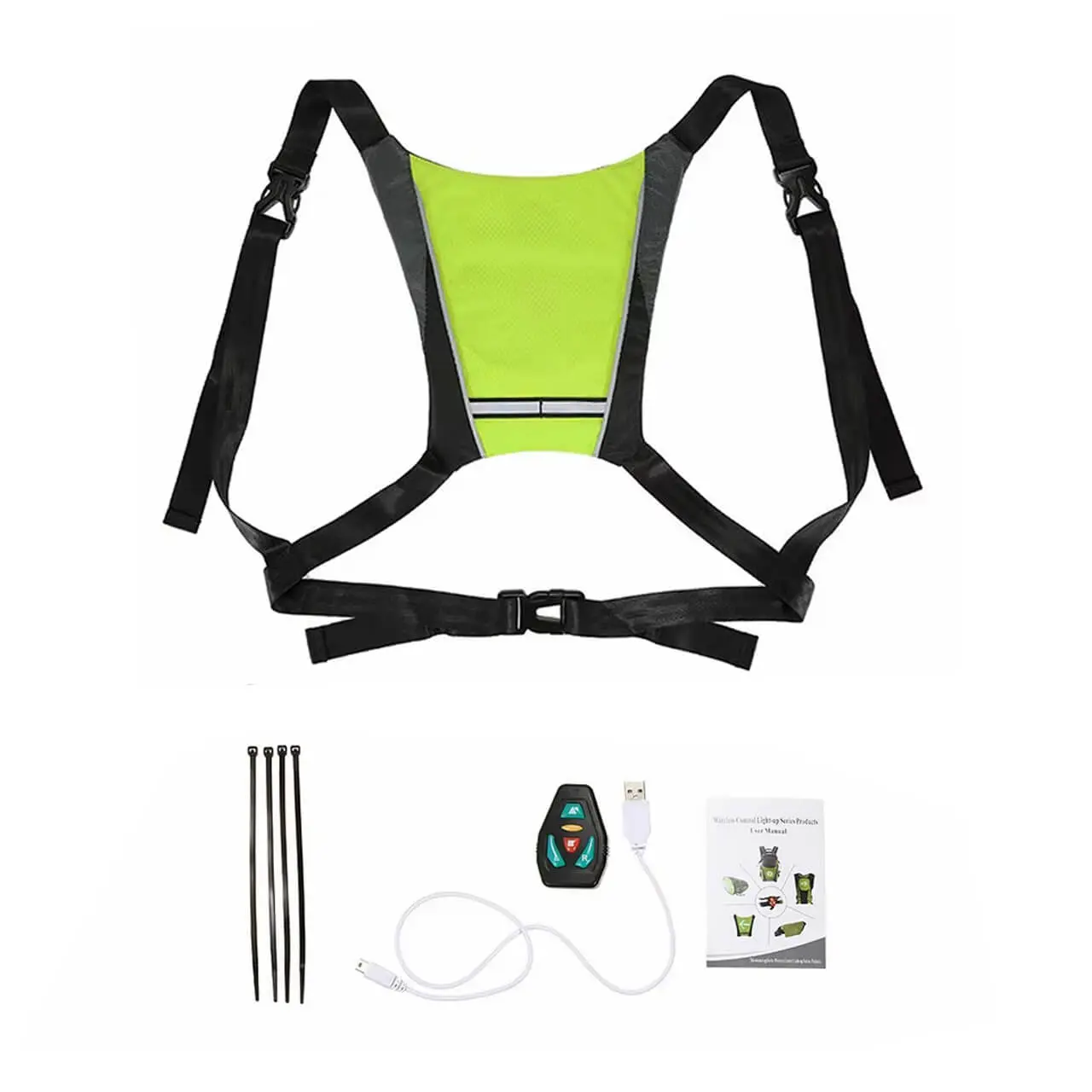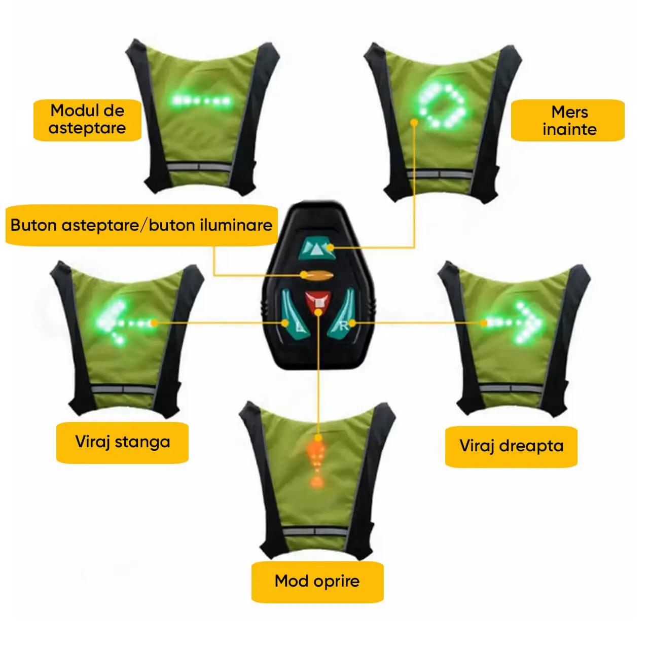 Vesta reflectorizanta bicicleta cu lumina LED si telecomanda, bretele ajustabile, ciclism, alergare, nylon, material tesatura Oxford, rezistenta la apa